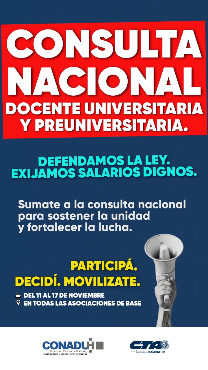 Te invitamos a participar activamente de esta consulta y a difundirla entre tus compañeras y compañero de tu universidad y de todas las universidades nacionales del país.
