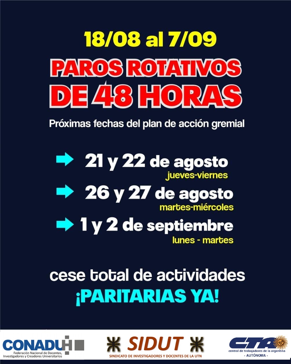 ::Del 11 al 17 de agosto: una semana de paro total de actividades en las 57 universidades nacionales::